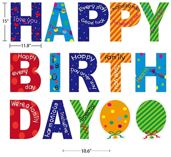 Features: Generic "Happy Birthday" message + misc. balloons, cupcakes, honk sign as shown