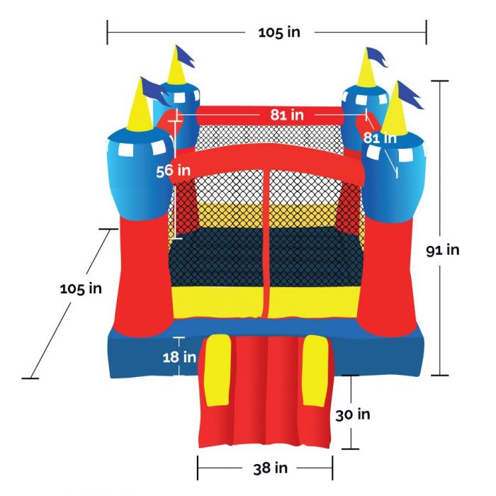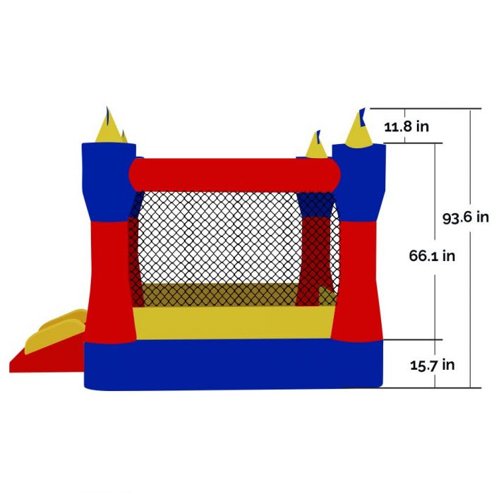 Features: Fun Castle Theme, Can be used Indoors, Safety Netting, Inflates in Seconds