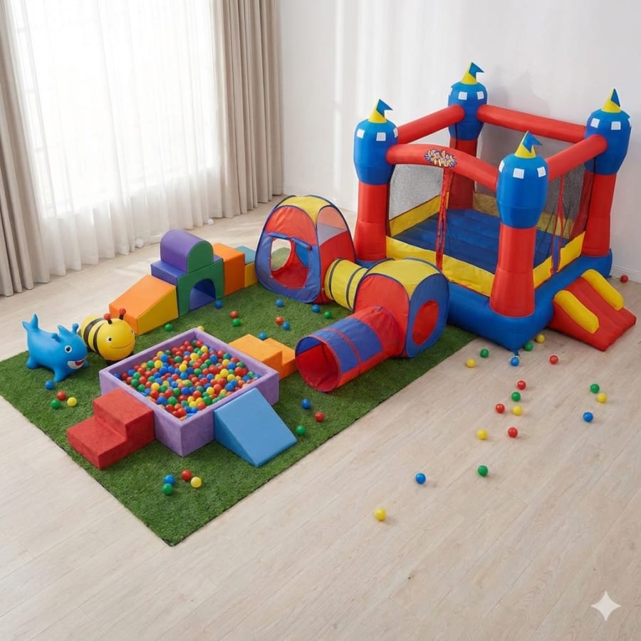 - Soft foam climbers and safe play surfaces reduce bumps and bruises
